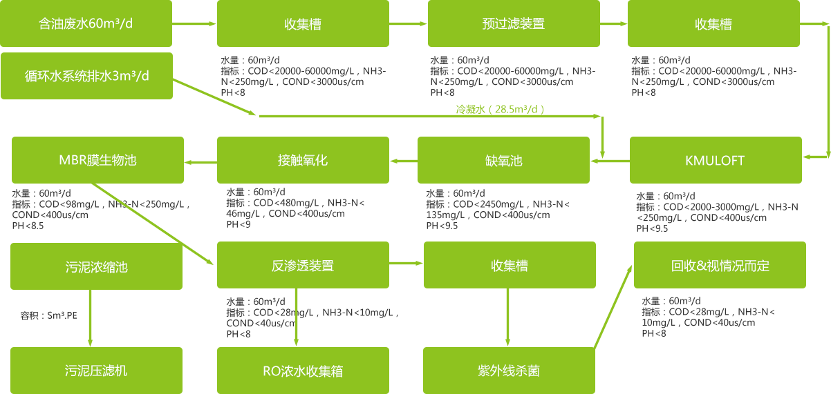 設(shè)計(jì)亮點(diǎn):化學(xué)處理+高效蒸發(fā)器+A/O+MBR